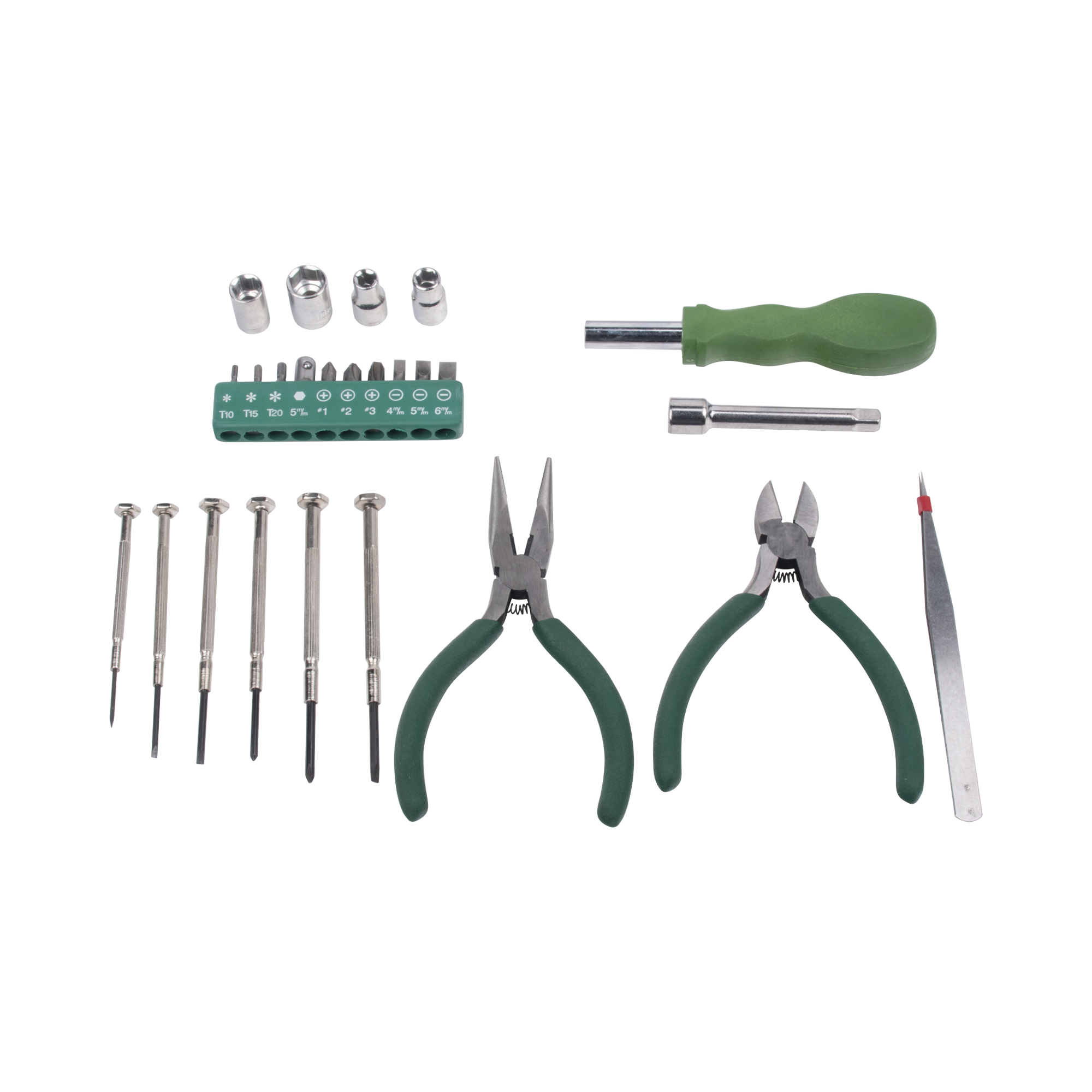 - T10, T15, T20, Hex 5 mm, #1.0, #2.0, #3.0, (-) 4mm, (-)5mm y (-) 6mm.
